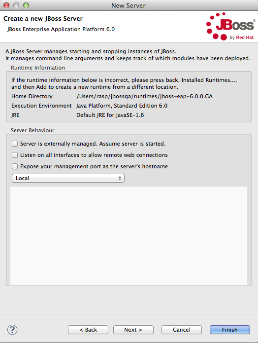 The information at https://access.redhat.com/knowledge/docs/en-US/JBoss_Developer_Studio/5.0/html-single/JBoss_Server_Manager_Reference_Guide/index.html#creating_a_new_server is not up2date. When you create an AS7 server (7.0.2+) you can check if you want to expose the management port. Also, for most servers you can check if the server is to be bound to all interfaces.