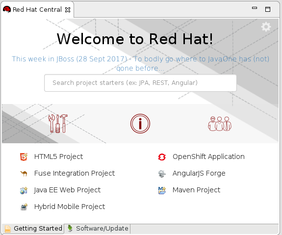 Note that switching to the Software/Update tab gets the Red Hat Central view to become populated with the correct content so the issue seems isolated to the 'Getting Started' tab.