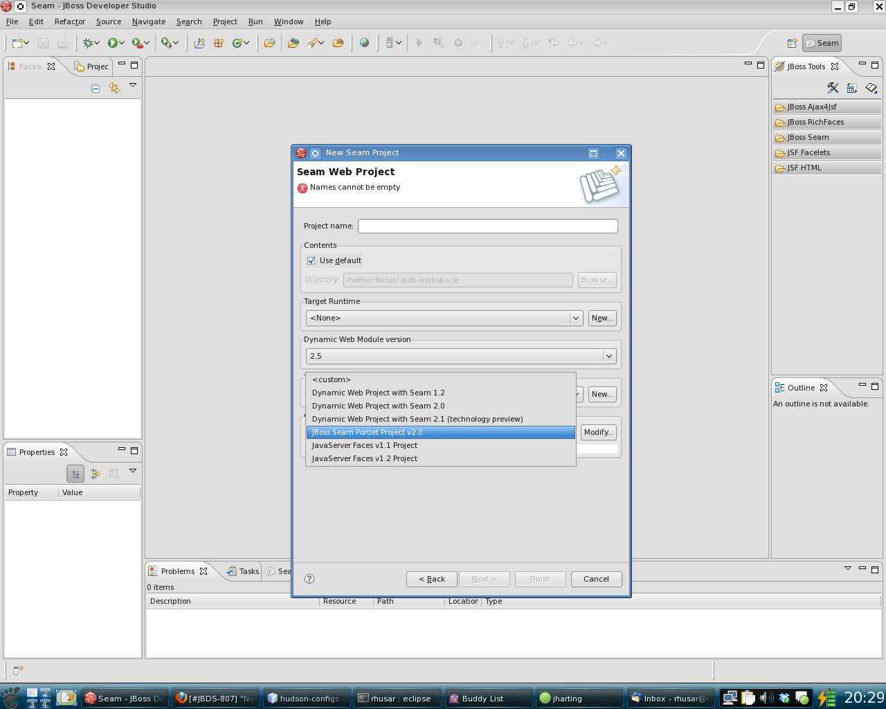2/ switch configuration to eg. JBoss Seam Portlet Project v2.0,