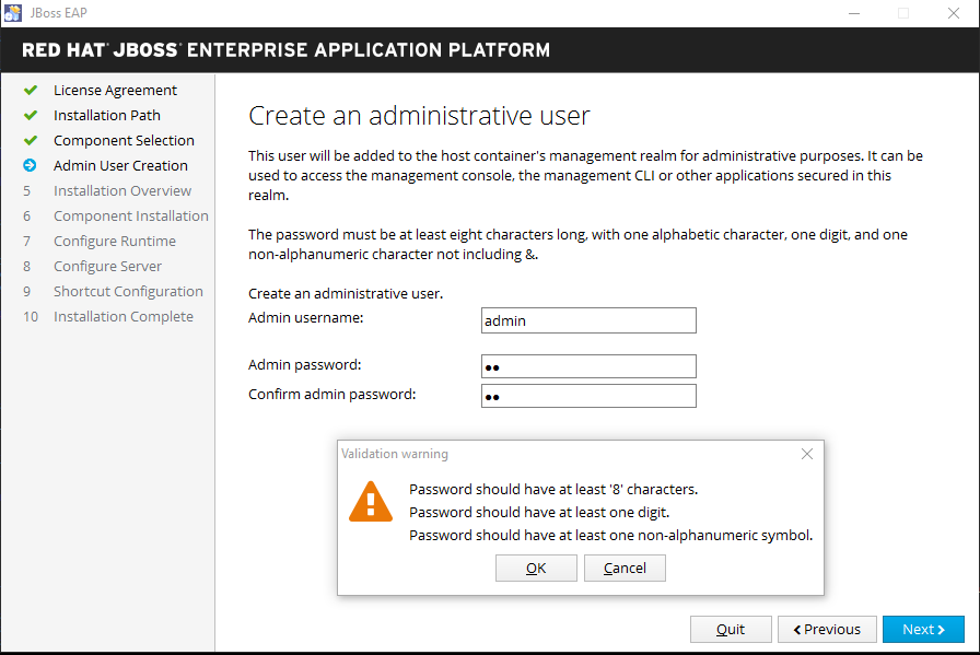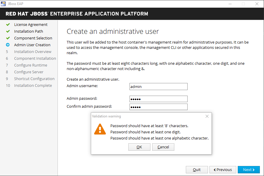 JBEAP-2859 Document that EAP installer no longer reject weak passwords