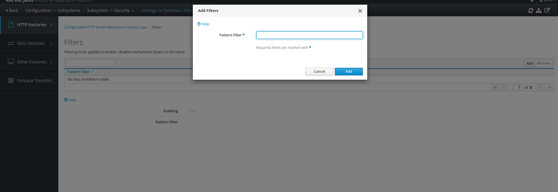 Configurable HTTP Server Mechanism Factory in the security subsystem is missing the Enabling setting when adding new filter (see the screenshot).