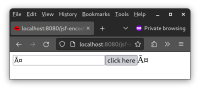 After click here is pressed, the wrongly encoded output can be seen inside the browser, see: