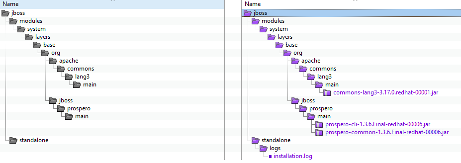 The JBoss EAP Installation Manager, located under $JBOSS_HOME/bin, is not updating certain JAR files in the modules/ directory. Instead of replacing the existing JAR files with the updated versions, the new JAR files are being added alongside the older ones.