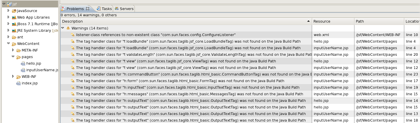 JSF project created with JBoss AS 7.1.1 has lot of warnings