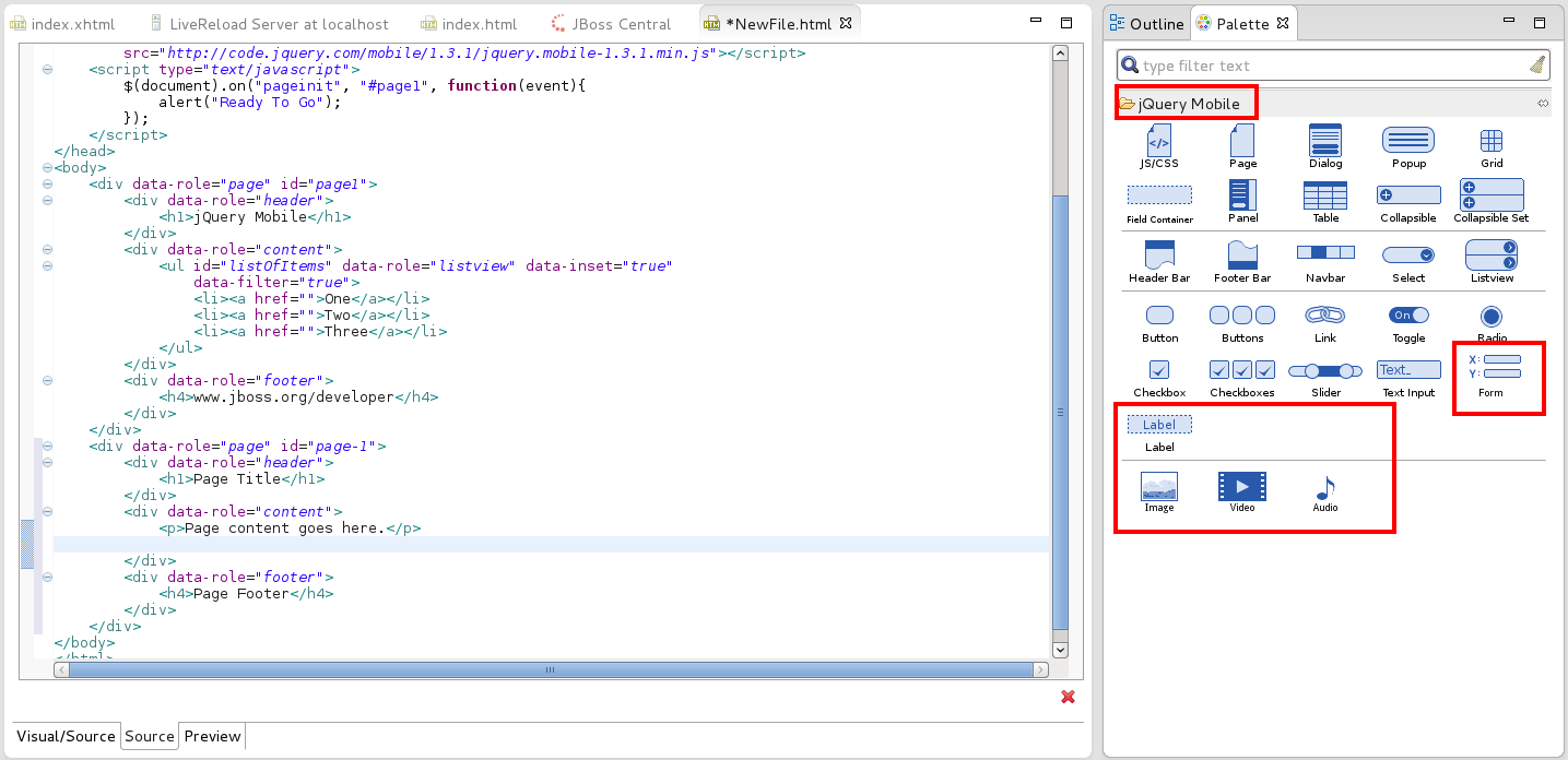 JBIDE-17165 jQuery Mobile Palette 1.3 still have HTML 5 items