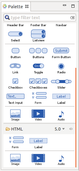 We moved HTML 5 items from jQuery Mobile 1.4 to HTML 5.0 palette folder.