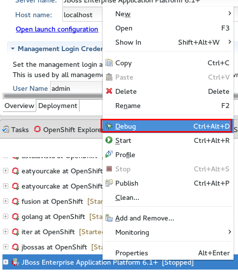Server adapter: allow users to "Debug" OpenShift applications