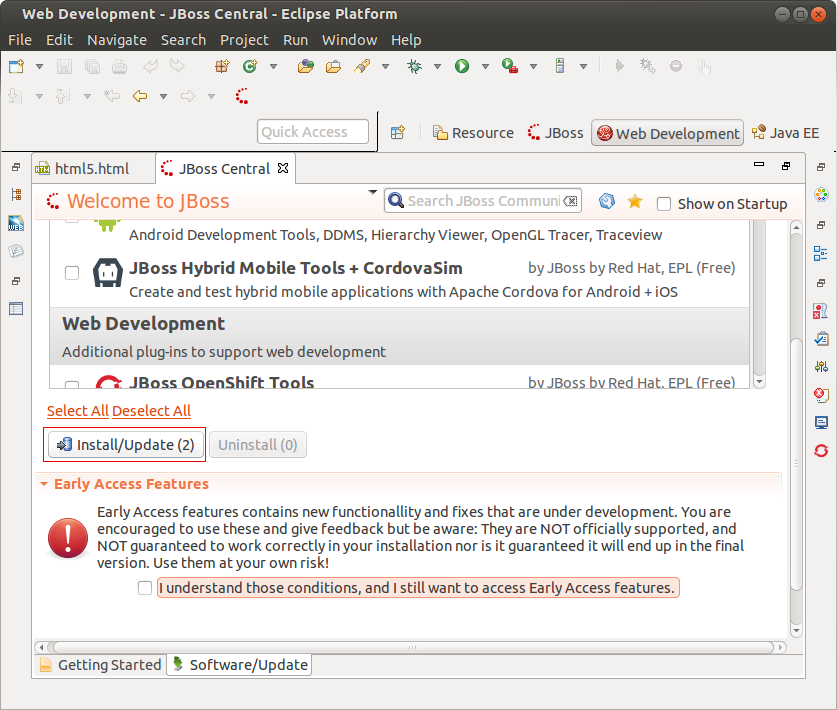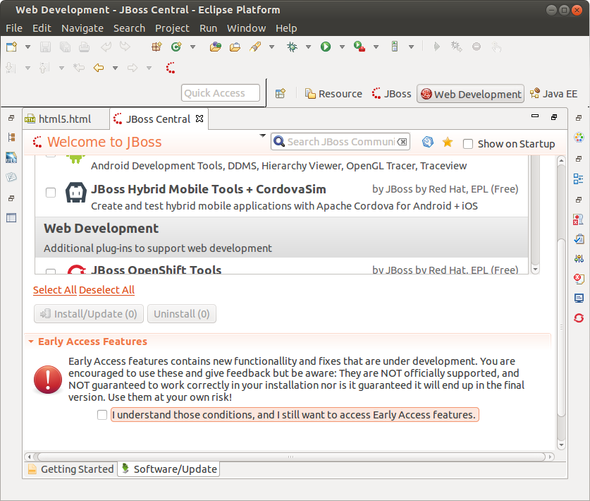 JBoss Central: It is possible to install Early Access features after uncheck "I understand those conditions" check-box