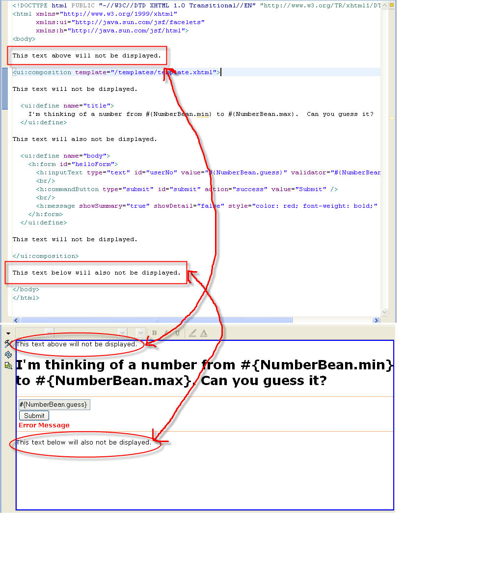 In VPE presents text from xhtml file with facelets which shouldn't be there .