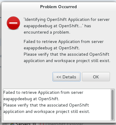 However, trying to delete an OpenShift application via adapter with non-existing project in workspace (but existing on OpenShift) this error message is correct.