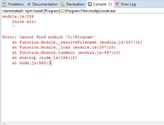 Error: Cannot find module 'C:\Program'