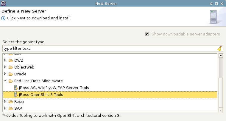 We have JBoss server adapters available in Eclise new Server wizard; would be great if we could put OpenShift in there too.