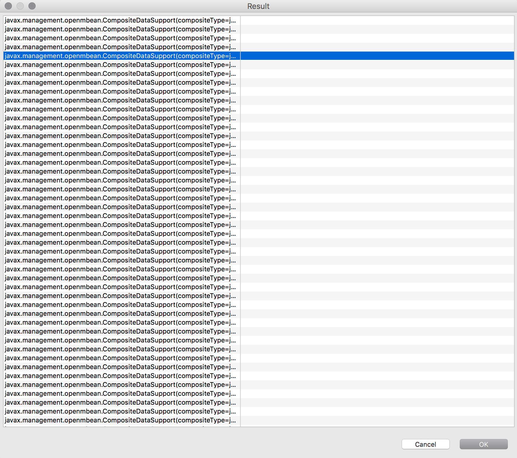 When executing a JMX remote operation, the "Result" dialog displays a single column that cannot be expanded, and the row content cannot be copied into the clipboard.