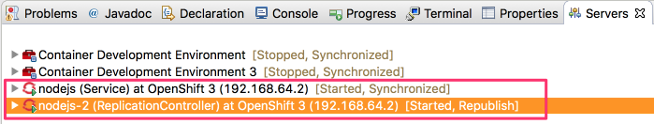 ASSERT: Have an OpenShift 3 connection and a project EXEC: Create a new application (I used nodejs:latest image) EXEC: Create a server adapter for the service that was created with the application EXEC: Remove the created service EXEC: open up the editor for the server adapter Result: An error pops up: The editor for the server adapter shows broken layout and widgets for the resource that the adapter is bound to: Expected result: The text-field for the resource type should be a label, so that it's immediately clear to the user that there's no editing possible. Furthermore ideally the type should not be cut off.