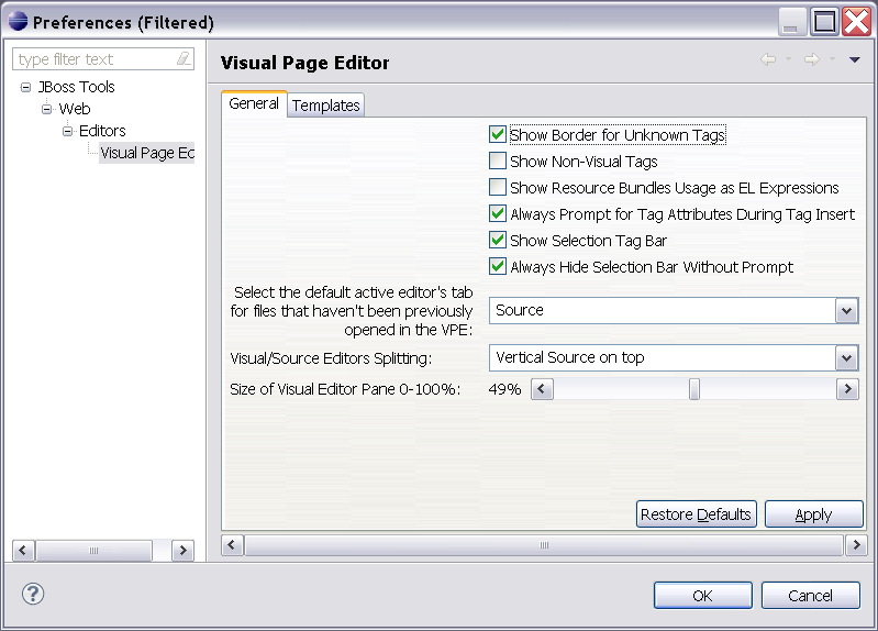 Maxim, as you told me "Default Editor Tab" selection means default editor tab selection for new created jsp file (for example), in other rest cases vpe remember it's last open state. When i press "Preferences" and "Default Editor Tab" i expect to change something usefull for current editor.