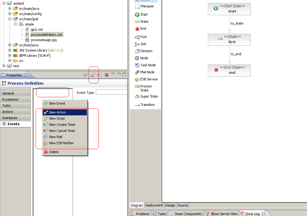 Unhandled event loop exception after adding new action usin Process Difinition Editor
