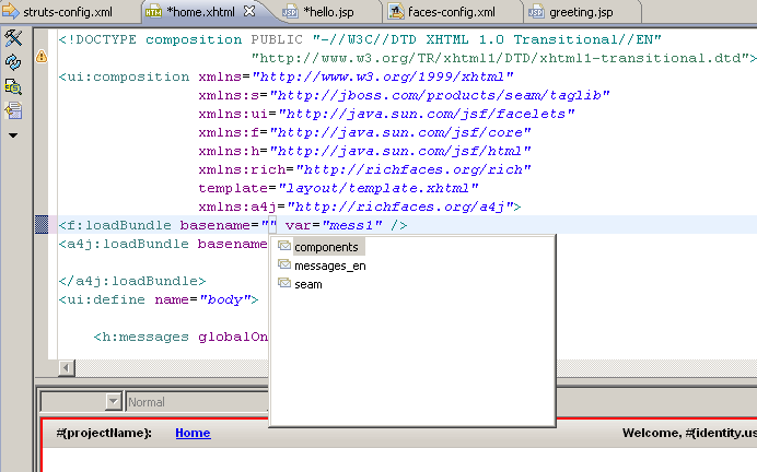 EXECUTE: Add string <a4j:loadBundle basename="|" var="mess2" />