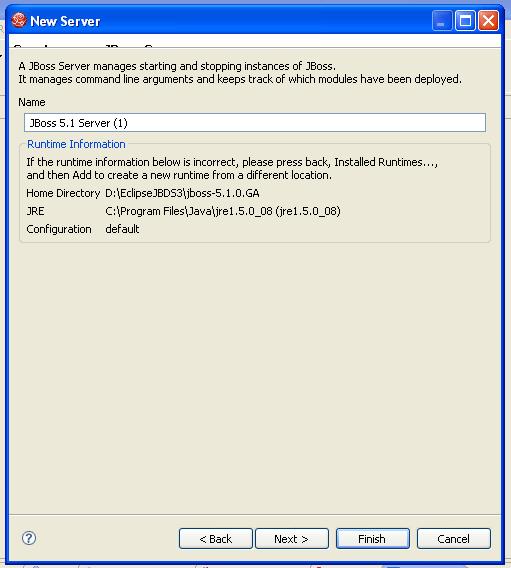 EXECUTE: Select JBoss AS 5.1, press Next.