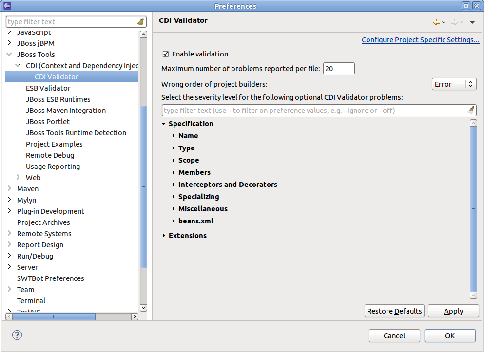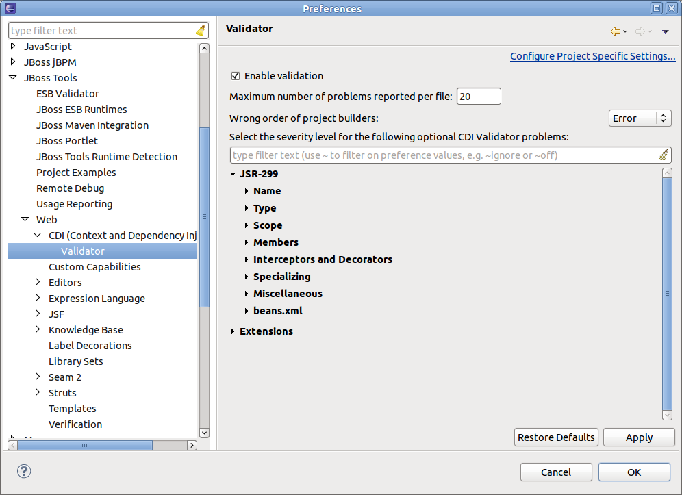 Move CDI Preferences from JBoss Tools->Web to JBoss Tools