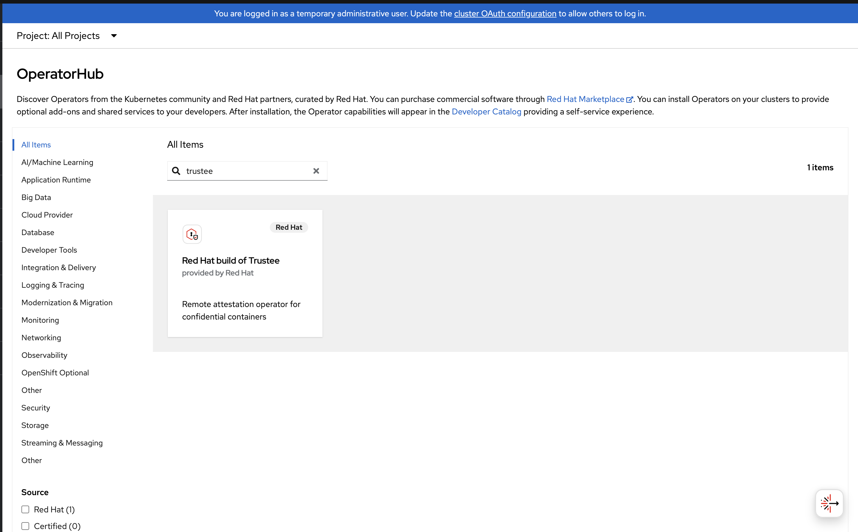 OSC is not listed on operatorhub - OpenShift marketplace on s390x clusters. but we are able to deploy OSC 1.10 via CLI. At the same time, trustee operator is visible on UI.