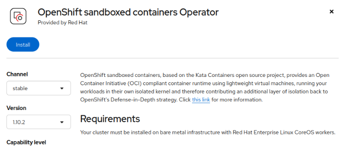 Requirements text on OSC Operator install screen is out of date: