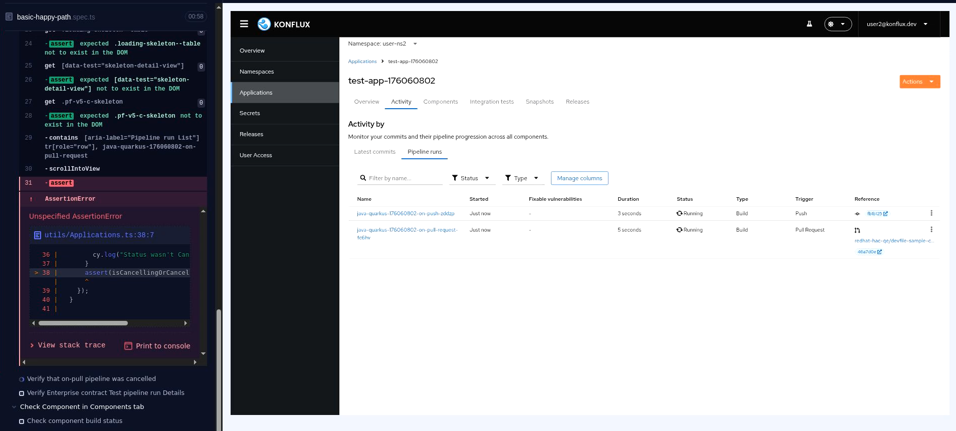 This test used to be stable, but now it occasionally fails because both pipelines are reported as Running (see a screenshot).