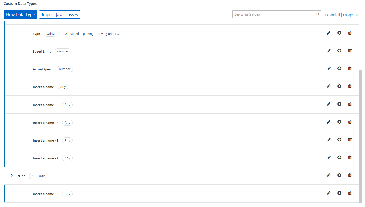 After adding more than 10 items under a Data Type, the child elements appear expanded over other data types.