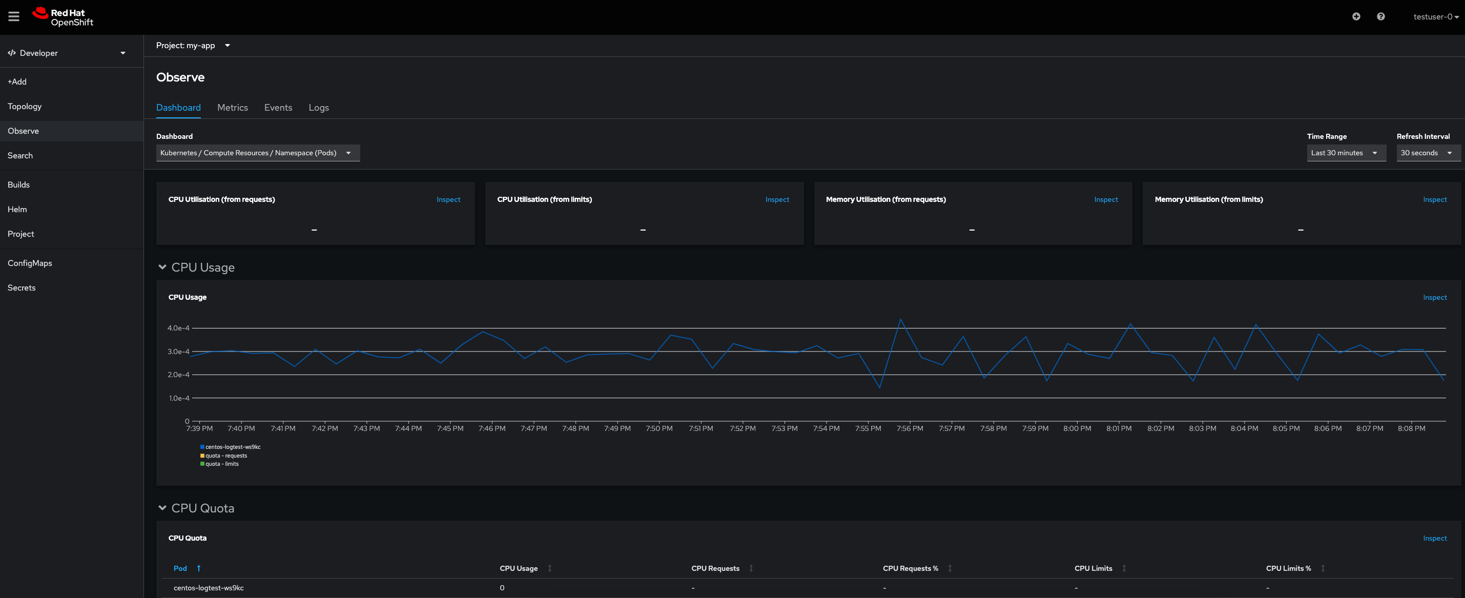 Screenshot attached of console. UserID is testuser-0