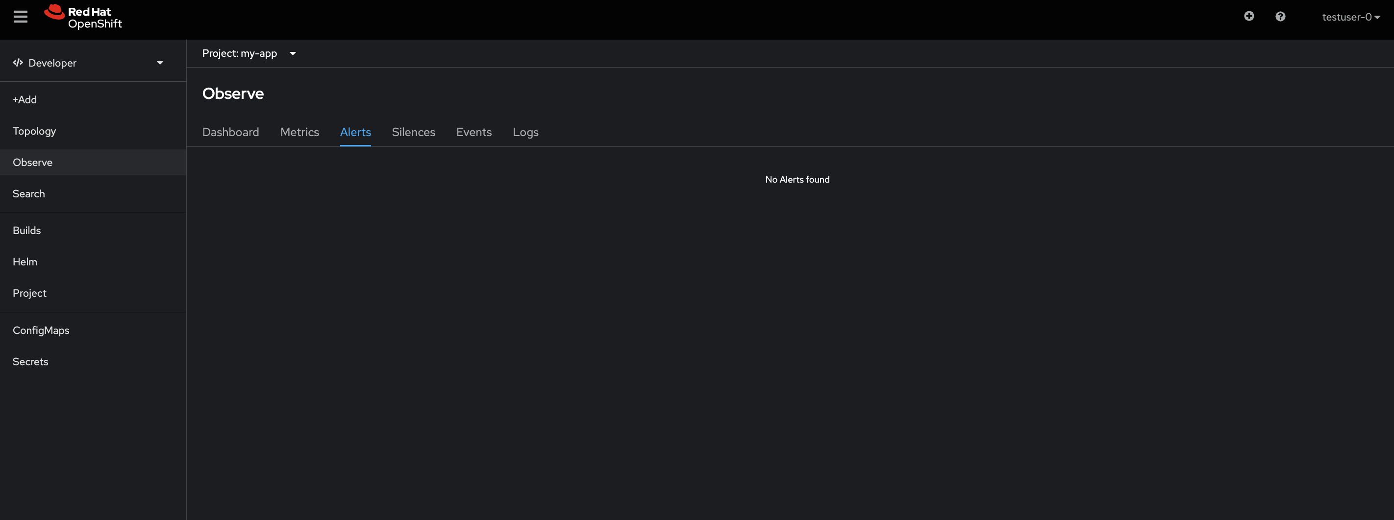Actual Result: User is not able to see 'Alerts' section under dev-console