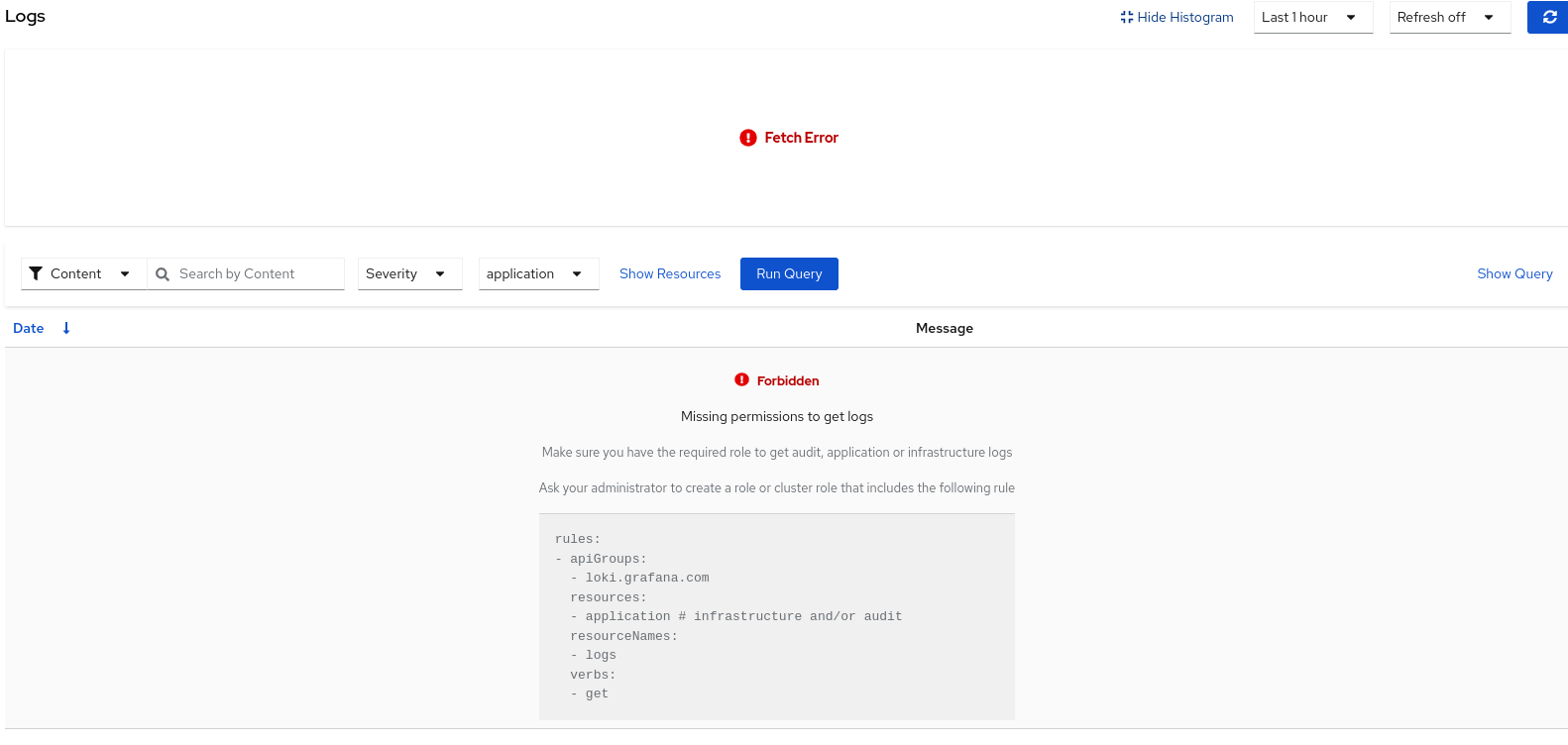 When the non-admin user with view role tires to see the application logs in Logs and Aggregated Logs page, it shows "Forbidden" whereas the same user can see the 'Dashboards' and 'Metrics' data.