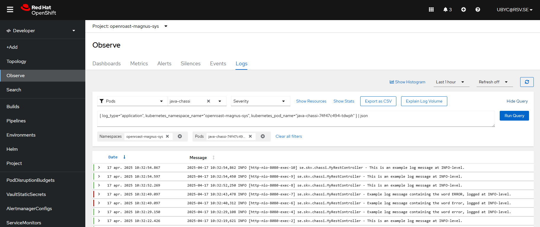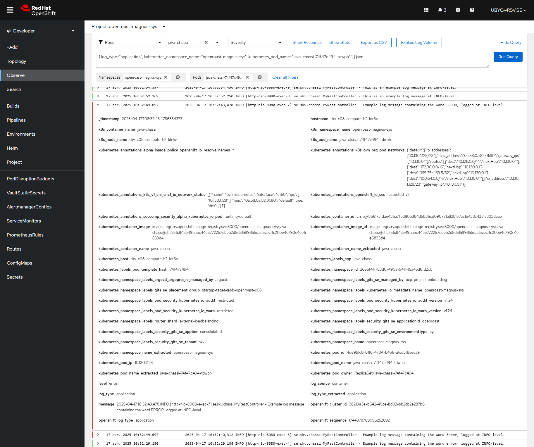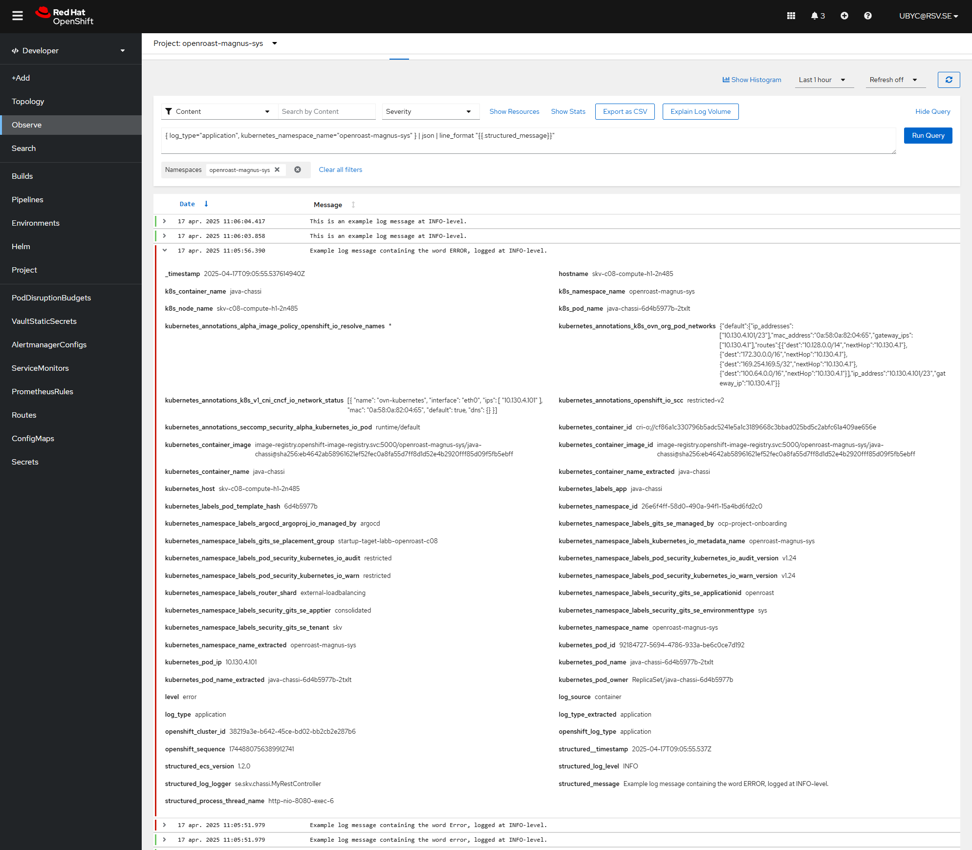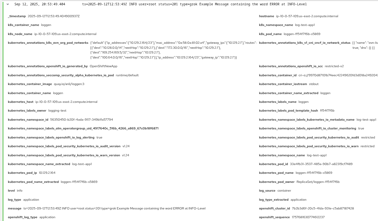 1. Generate an info level log message that contains the word error 2. View the logs in the main console UI (not the console pod logs) 3. Observe that the log entry is highlighted in red as if it were an error