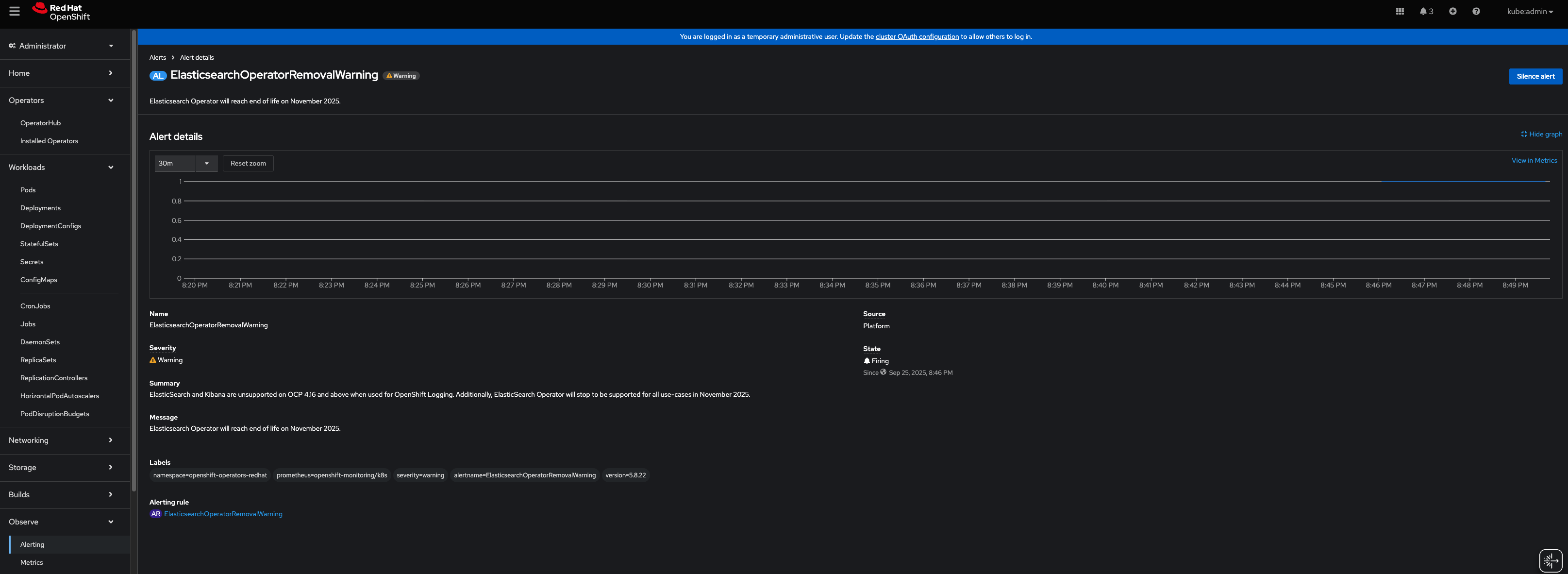 In the Elasticsearch Operator installation and in the alert "ElasticsearchOperatorRemovalWarning" is present the next sentence