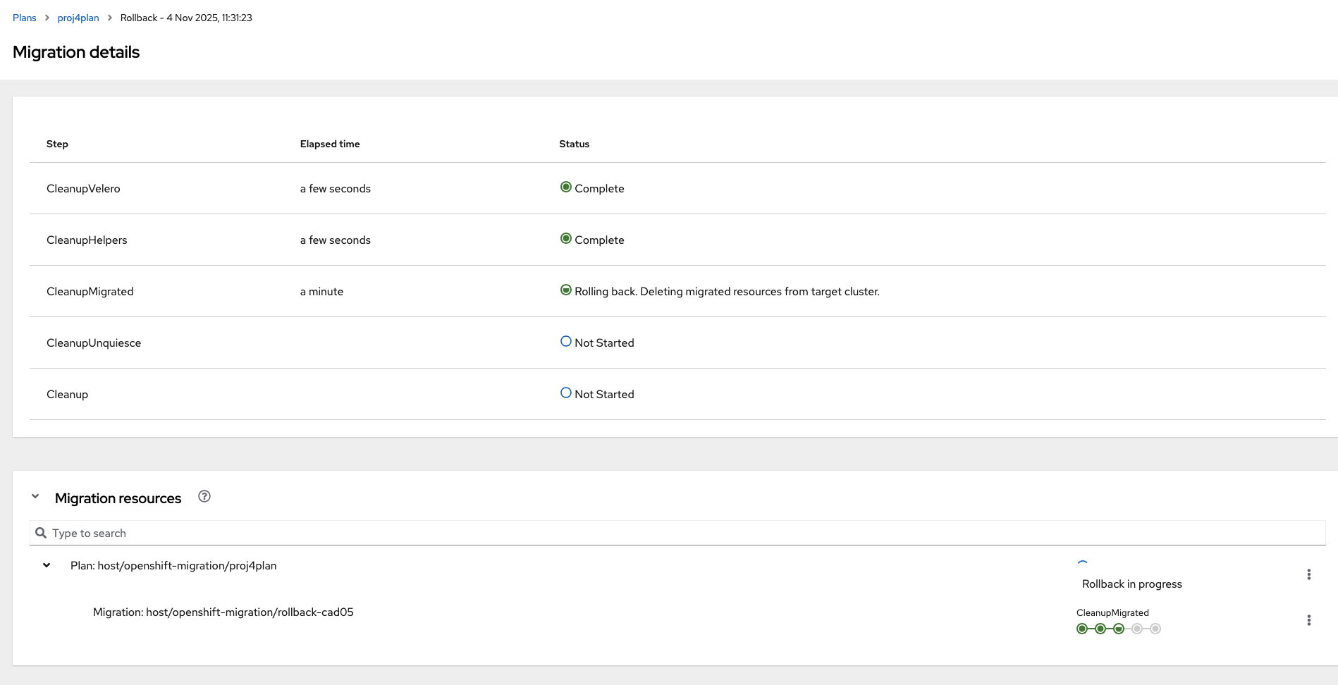 When rolling back k8s objects in MTC, like secrets with finalizers in place, the operation will get stuck in the 'CleanupMigrated' stage waiting for objects to be removed.