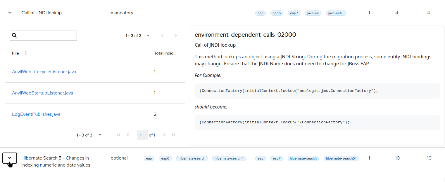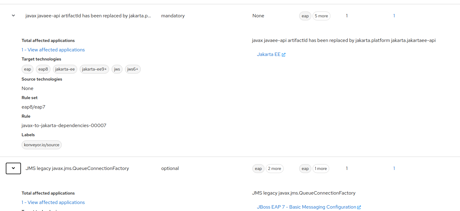 HTML analysis reports generated by MTA on containers and Kantra does not display message text from matching rule. It only shows the links