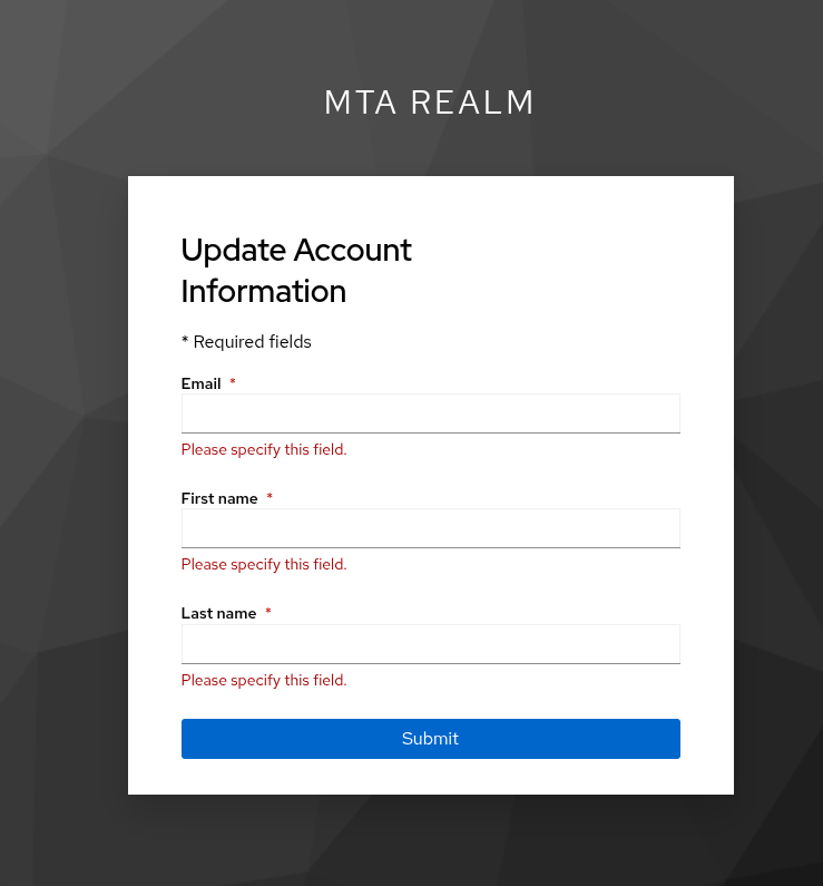 UI redirects to page requesting fill firstname, lastname and email.