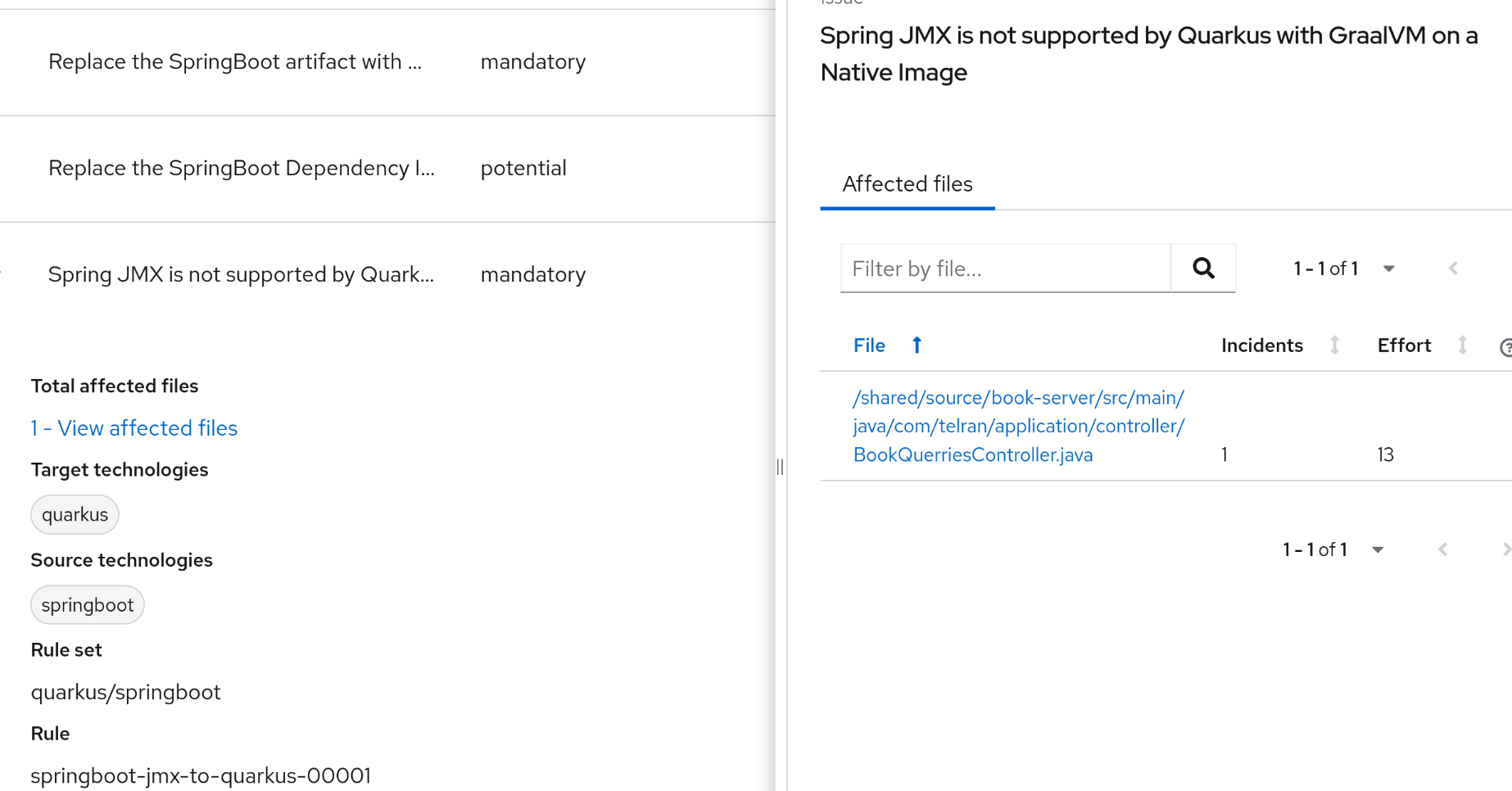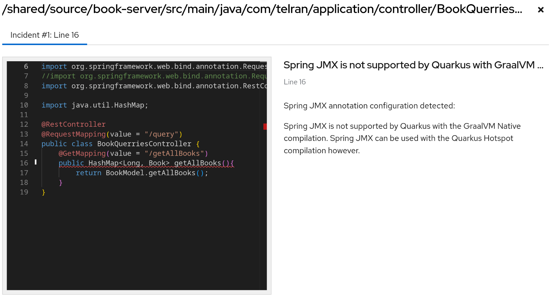 False positives for annotation rule springboot-jmx-to-quarkus-00001 for bookServer