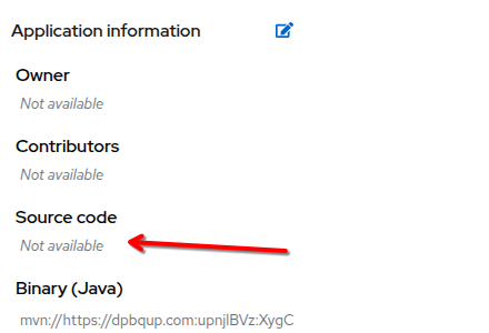 The Source Repository URL should be displayed in the Application Details Drawer under the Source code field, even if the Repository Type field was skipped.