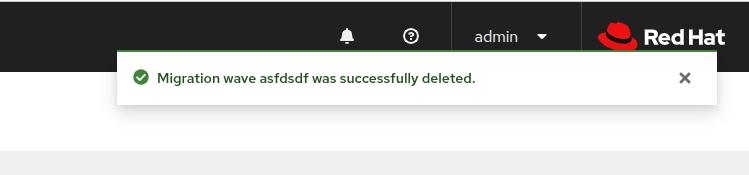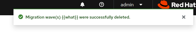 The deletion notification displays a placeholder when the user deletes a migration wave
