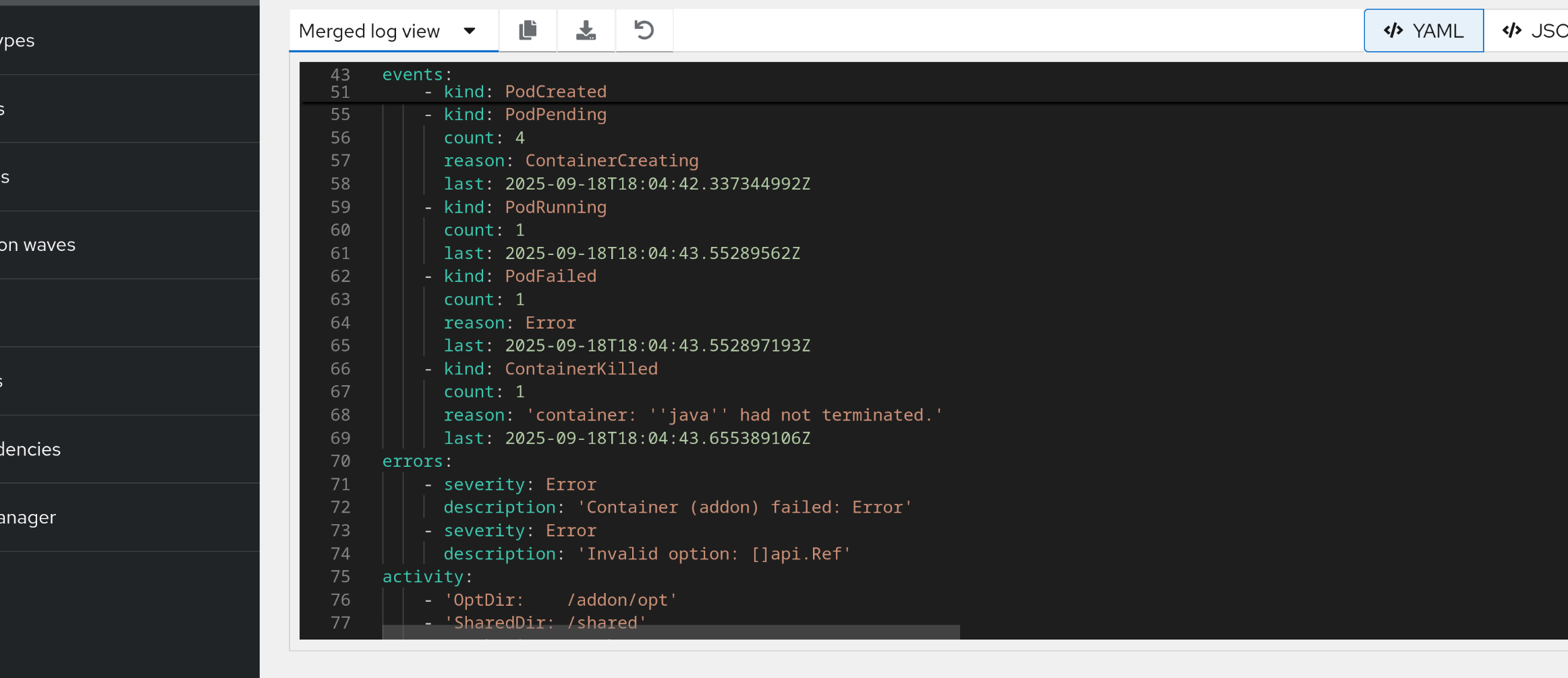 errors: - severity: Error description: 'Container (addon) failed: Error' - severity: Error description: 'Invalid option: []api.Ref'