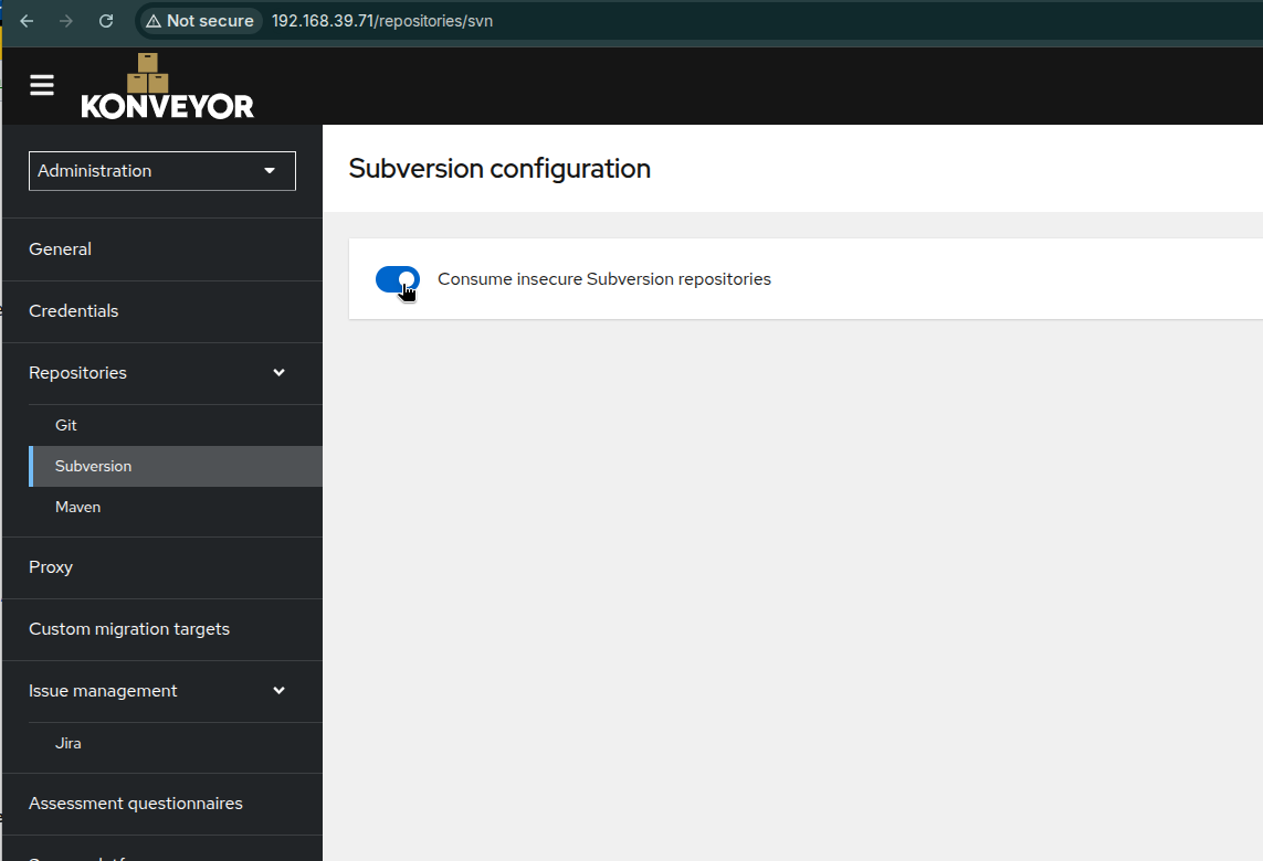 Error “can’t access property kind” appears and the UI becomes blank when editing an application with an HTTP SVN URL while “Allow insecure connection” is disabled in Admin settings.