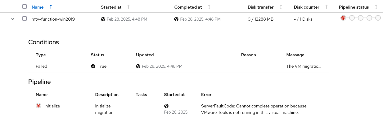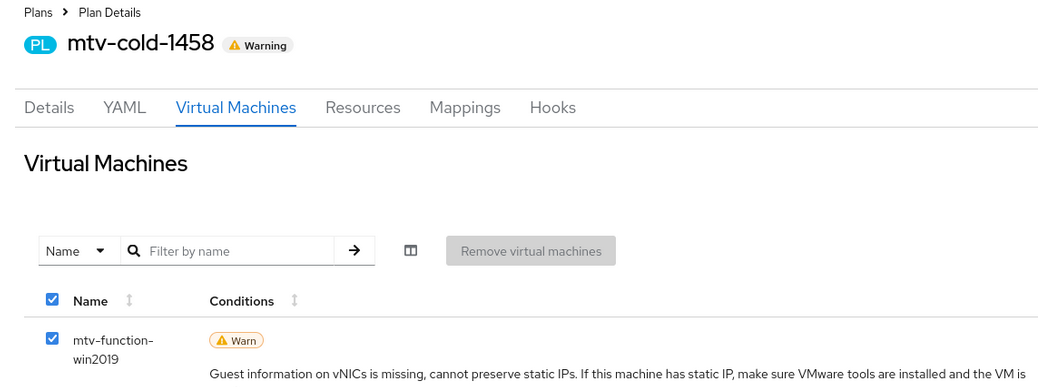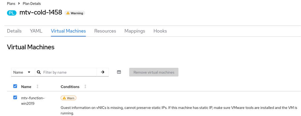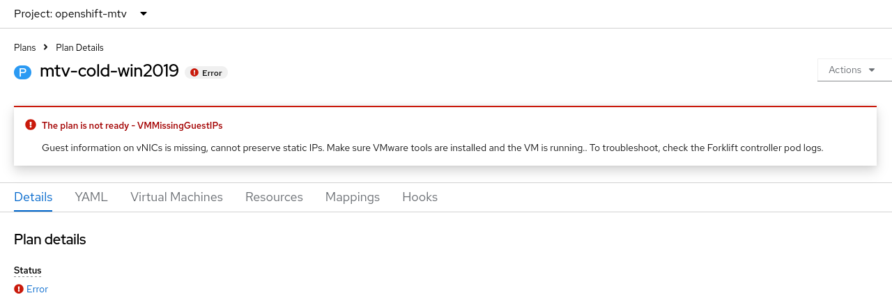 When selecting "preserve static IP" and migrating a VM without a static IP configuration, then the backend is reporting that the VM was not running. But this is incorrect, the VM was running, but it just does not have a static IP configuration (not inside, and also not repoetred by the VMw API).