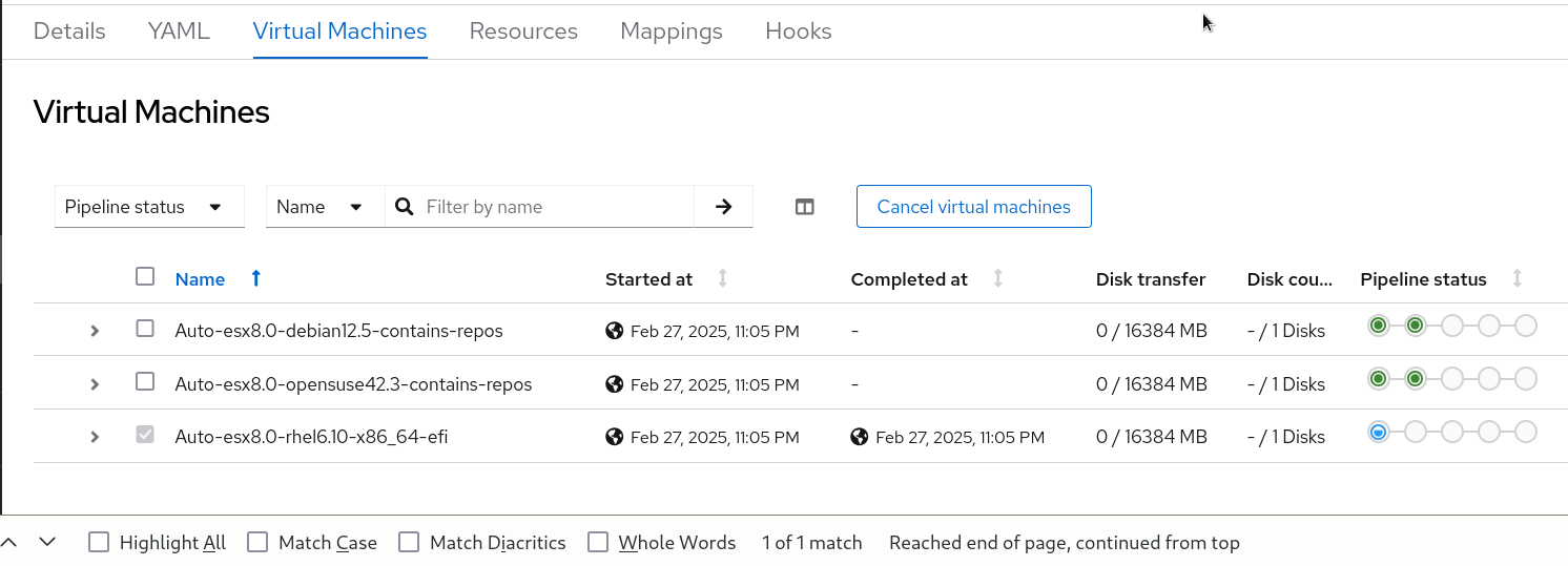 When the user tries to remove a vm from an existing plan and it's not allowed for some reason (i.e. last vm in a plan, plan status doesn't support vms removal etc), then the cancel virtual machines or remove virtual machines buttons are always enabled , but once clicking on them, an error modal with an alert is displayed.