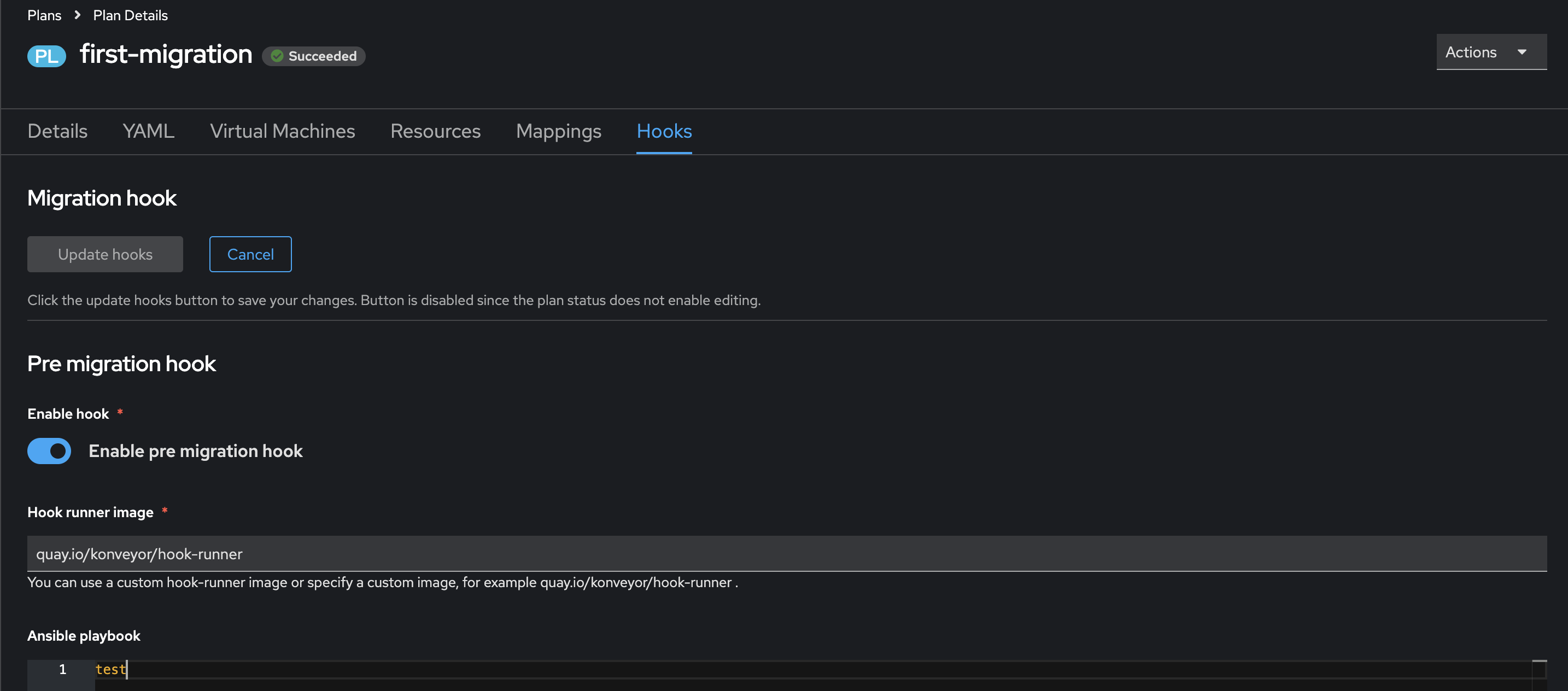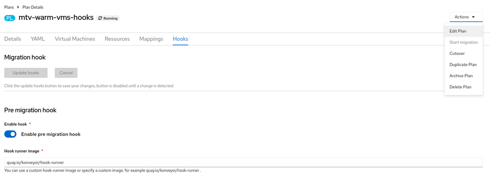 • The user can edit hooks under hooks tab for archived and running plans.
