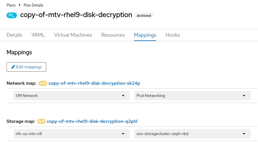 • The user can edit mappings under mappings tab for archived (never started) plans.
