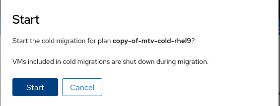 3) In the Plans -> Plan Details -> Virtual Machines page, select the VM and click "Start Migration" button, sometimes the page no change, then click the "Start Migration" button again, this cause the 2 Migration are created:
