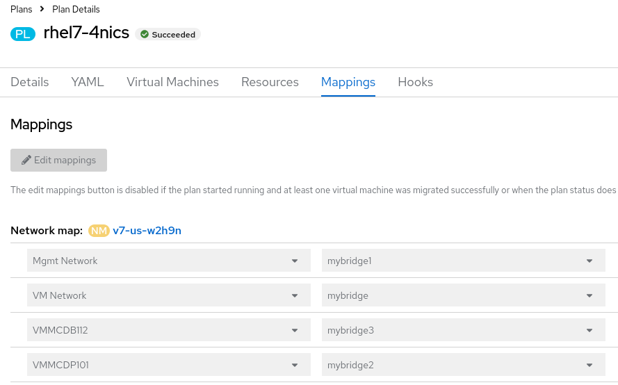 VMs with multiple NICs must be mapped in the same sequence from the source as what that guestOS shows to maintain the correct eth#. The MAC addresses will be interchanged