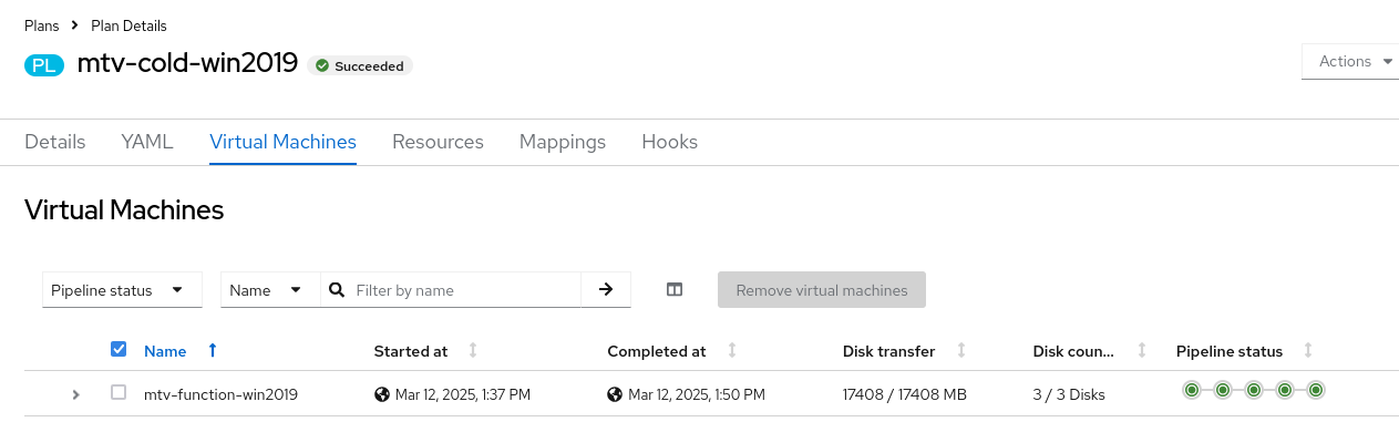 1. Create multi virtual machine migration plan from VMware provider. 2. Start the migration