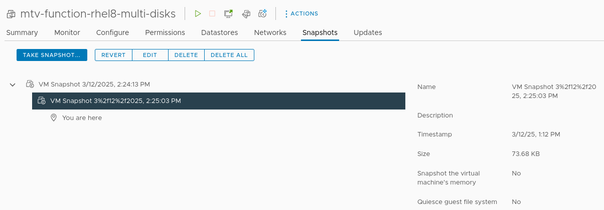 2) Start the migration plan, create 2 snapshots on source for this VM before the ImageConversion phase