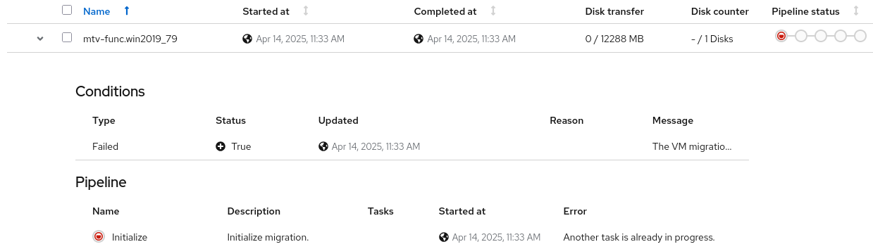 1. Create a Plan with a single VM. 2. Create a Migration resource with the ID of the VM in the "cancel" field. 3. Observe that the status of the Migration and Plan do not change, but the logs of the controller spin out of control as it endlessly recycles the canceled VM.