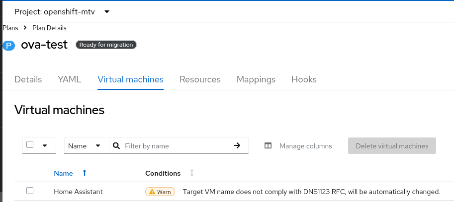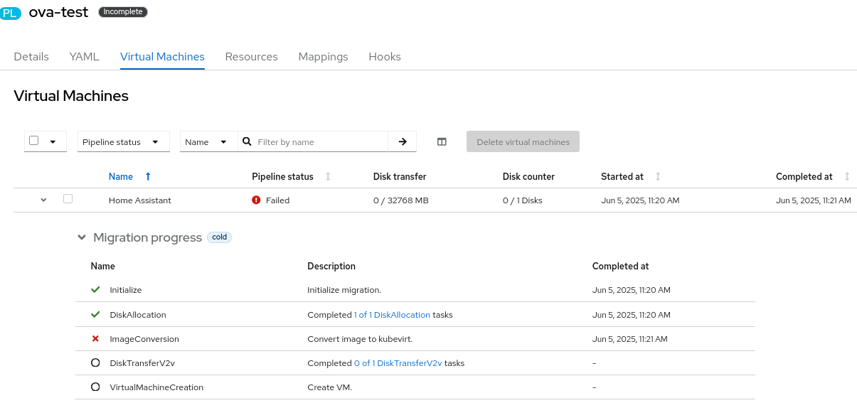 1. try to import ova image with MTV 2.7.11